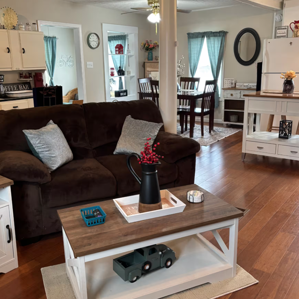 Reconnect with nature at this tiny home for an unforgettable escape on our farm property. Sit out on the 350 sq ft covered porch with your coffee and watch the wildlife. Plenty of parking for your car, truck, RV, semi or trailer. Enjoy the full tub/shower and washer/dryer with lots of storage. The kitchen has a fridge, electric stove, microwave and a dishwasher sink combo. Sit and watch tv with a pull up coffee table and a 55 inch tv. Enjoy the queen bed with a tv and a nice closet. Visit the listing on Airbnb for more details.